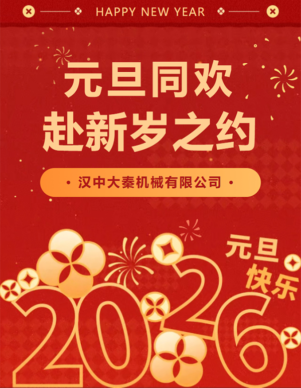 歲啟新元,福伴安康。值此2026年元旦佳節,漢中大秦機械有限公司向所有合作伙伴、各界朋友致以誠摯祝福!